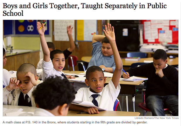 Medina, J. (2009, March 10). Boys and Girls Together, Taught Separately in Public School. New York Times. Retrieved from http://www.nytimes.com/2009/03/11/education/11gender.html?pagewanted=all&_r=0